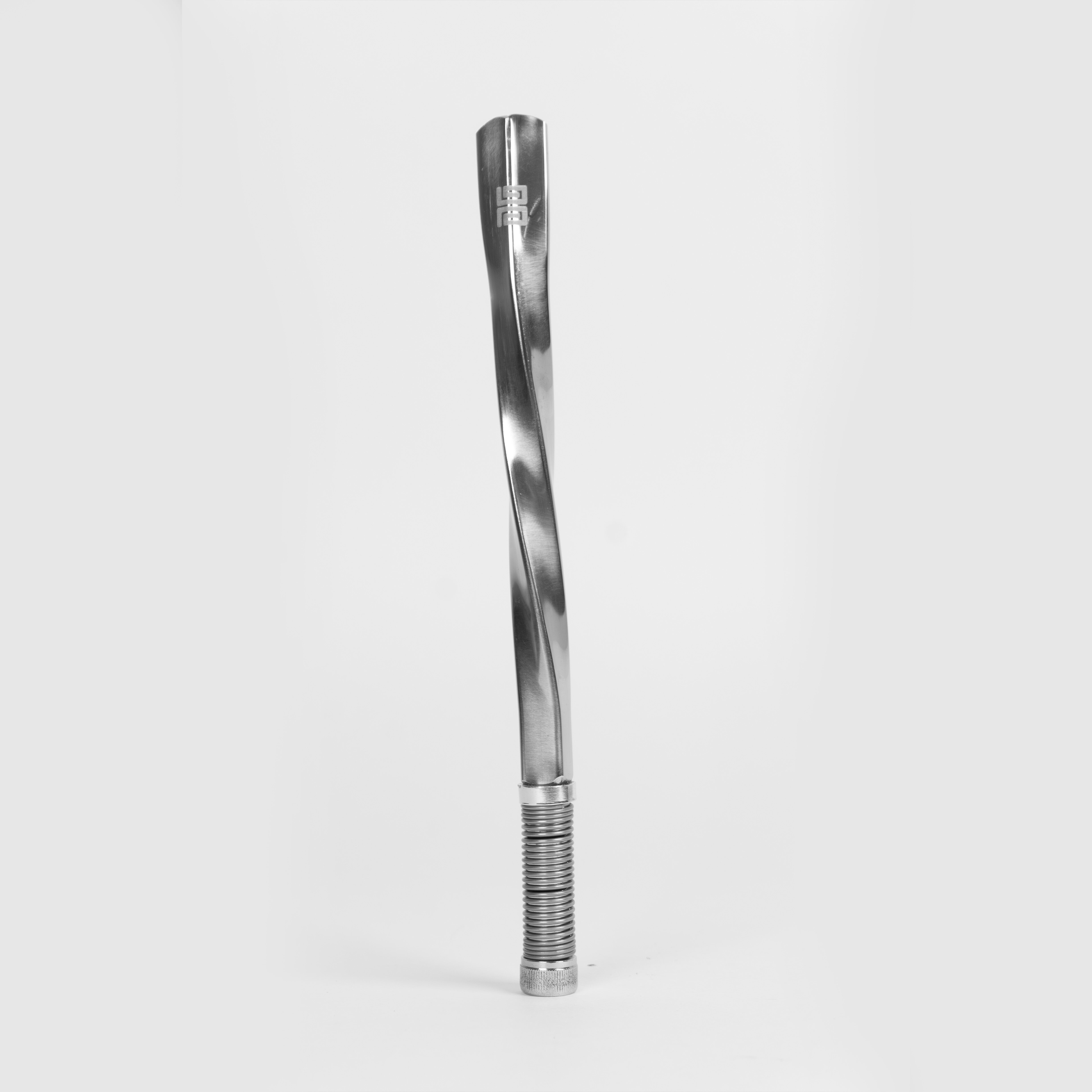 Feita em aço inoxidável, sua forma quadrada com acabamento torcido é inovadora e ergonômica, garantindo conforto no uso diário.